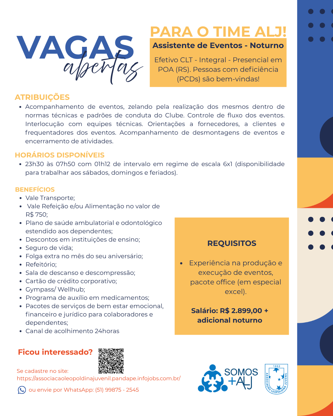 - Experiência na produção e execução de eventos, pacote office (em especial excel).